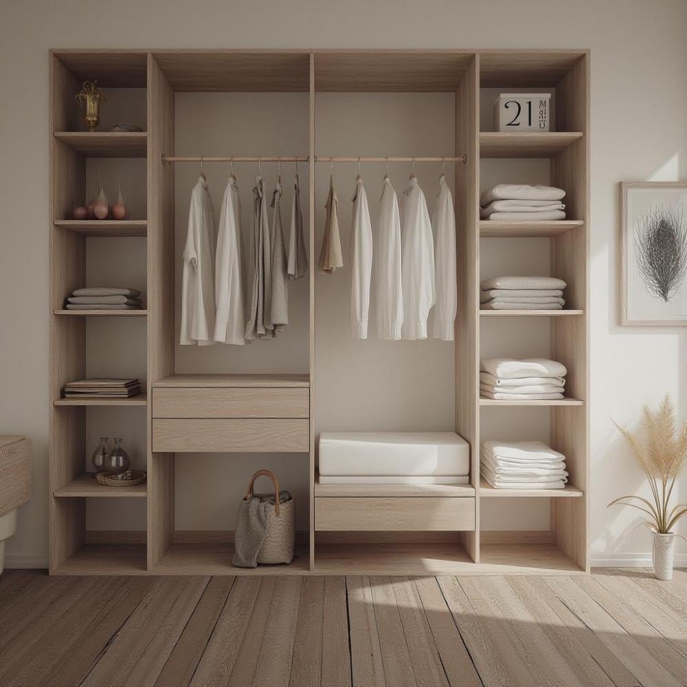 استمتع بأناقة التصميم وجودة التصنيع مع خزانة الملابس العصرية ذات اللون البني الخشبي الداكن. صممت خصيصًا لعشاق الألوان الطبيعية والتفاصيل الخشبية الراقية، وتتميز بتوزيع عملي للأرفف لتمنحك تجربة تنظيم مثالية لملابسك.