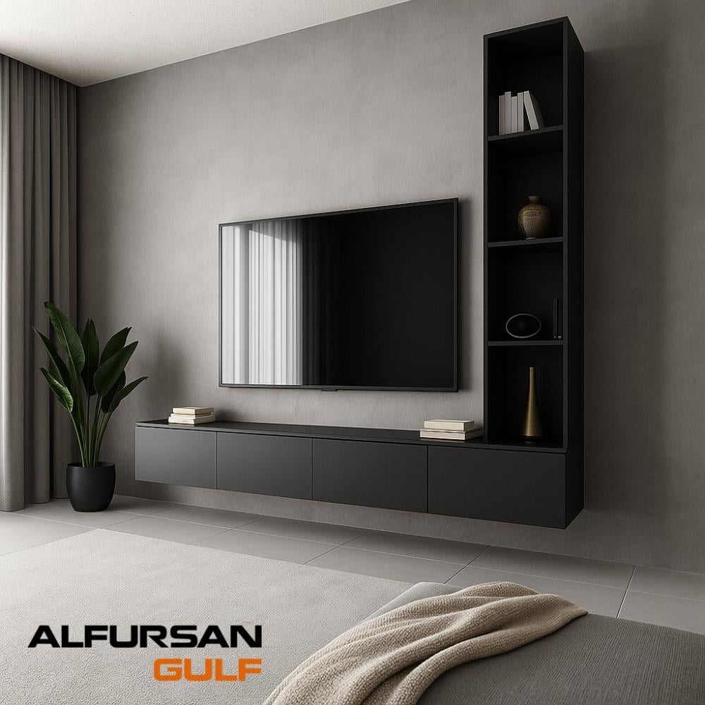 طاولة شاشة معلقة مع رفوف باللون الأسود تعد إضافة مثالية لمنزلك، إذ تجمع بين التصميم العصري والوظائف العملية بشكل متوازن. تم تصميم هذه الطاولة بعناية لتلبي احتياجاتك اليومية، فهي مزودة بوحدة رفوف متعددة الاستخدامات، توفر لك مساحة كافية للتخزين والتنظيم بطريقة أنيقة. بفضل تصميمها المرن، يمكنك اختيار تثبيتها مباشرة على الأرض أو تعليقها على الجدار، مما يمنحك حرية أكبر في استغلال المساحة حسب أسلوب منزلك. تم تصنيع الطاولة من خشب تايلندي مضغوط عالي الجودة، ومغطاة بطبقة من الميلامين المقاوم للخدوش والرطوبة، مما يضمن لك متانة تدوم طويلاً وأناقة لا تفقد بريقها مع مرور الوقت.