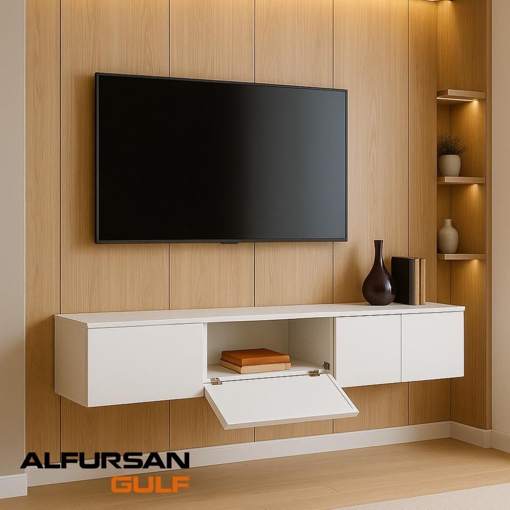 طاولة تلفزيون إمكانية تركيبها على الحائط معلقه او وضعها على الأرض مباشرة